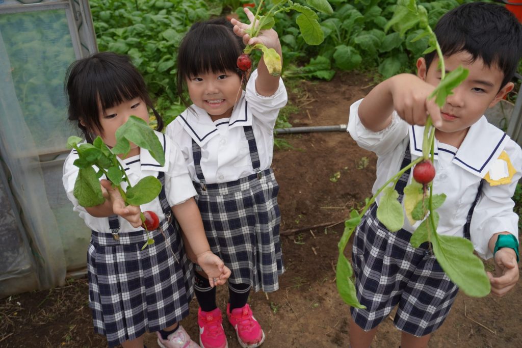 先日、しらゆり農園で育てていたラディッシュが収穫時期を迎えたので年少・ひよこ組から収穫体験を行いました!