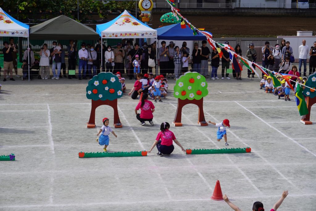 次に行われたのは年少さんの部!幼稚園で初めての運動会でまずは「ずっとずっとトモダチ」でダンスを披露!力いっぱい堂々と踊りました!