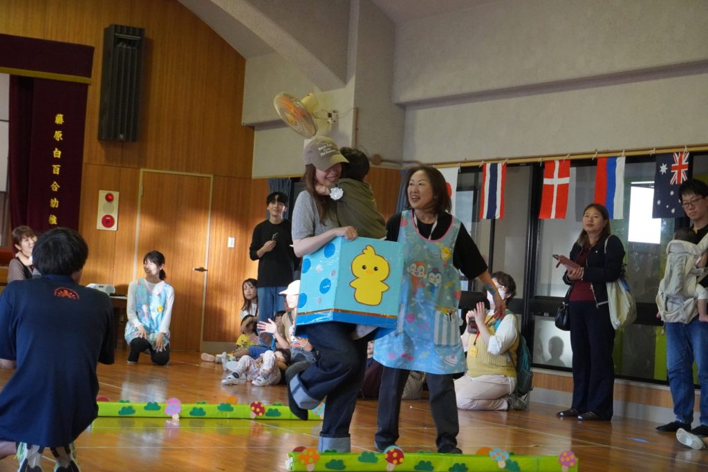 月に1度ひよこ組で体操を教えて下さっている体操講師の髙橋先生も一緒に、はじめはアンパンマン体操で身体の準備をしました!