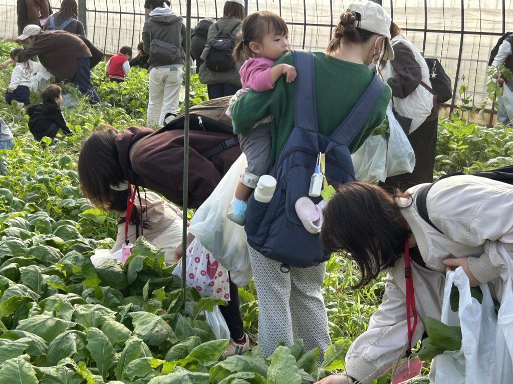 エプロンシアターをみんなで見た後は、しらゆり農園のカブとラディッシュを収穫しました!