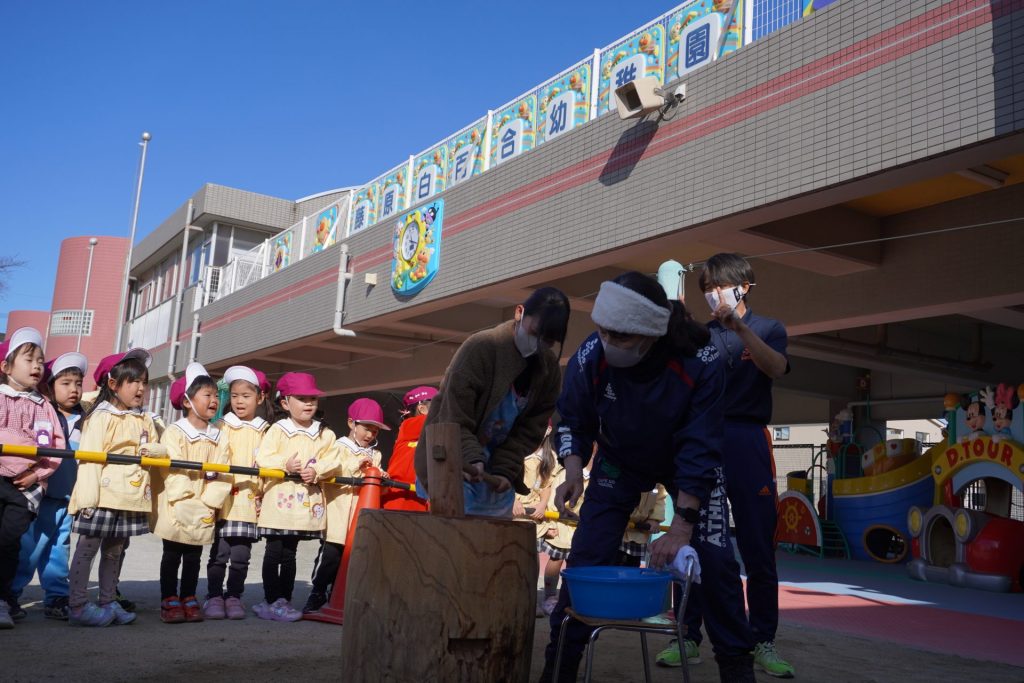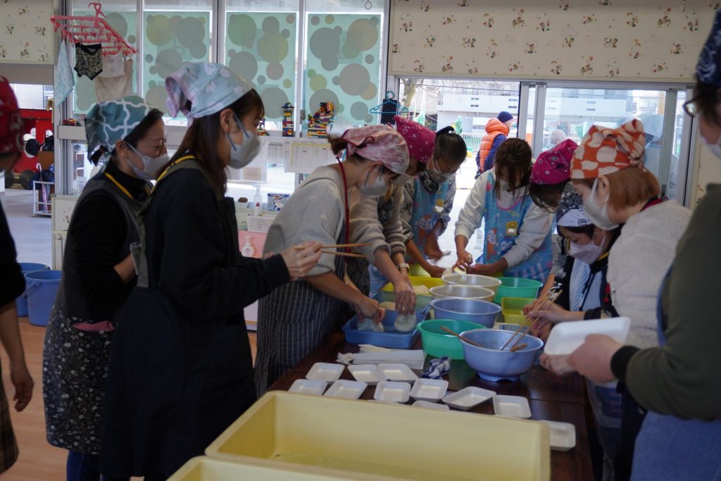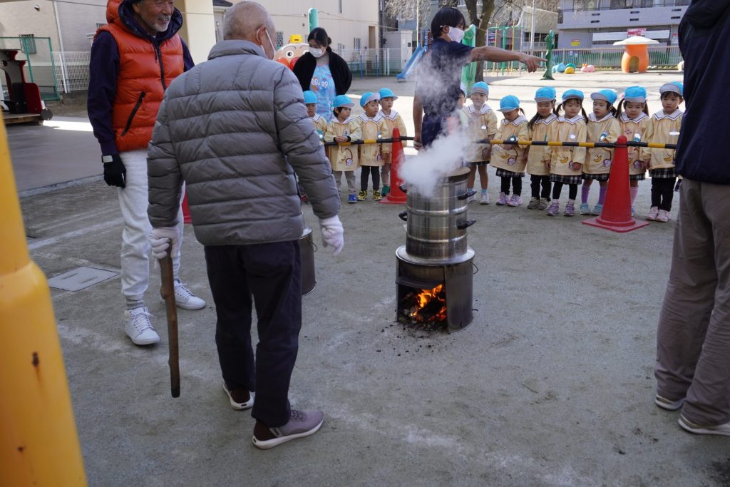 12月16日はおもちつきがありました!せいろで炊いたもち米を見た子供たちはこれがお餅になるの?と疑問に思っていましたが