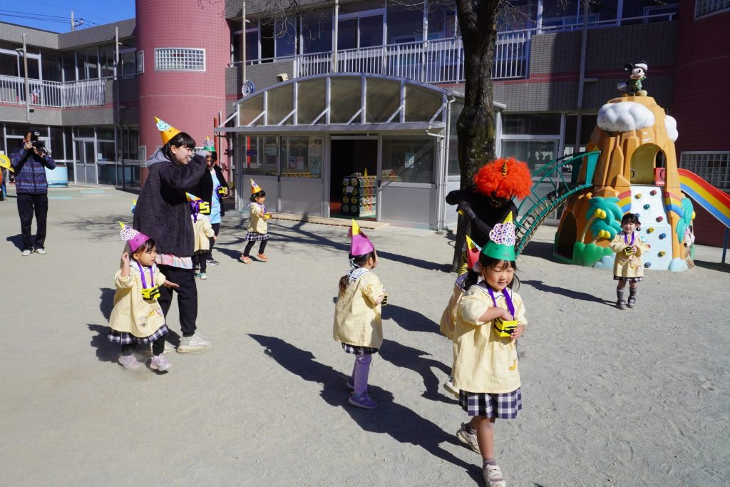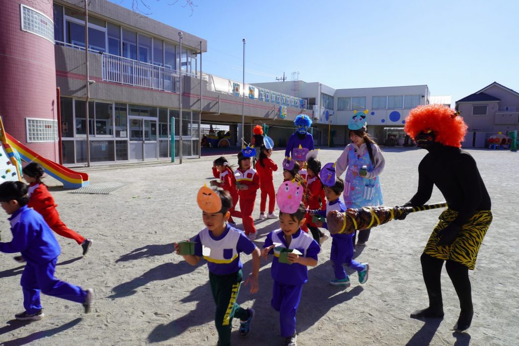 2月3日は節分ということで毎年恒例の豆まきの日です!今年は怖~い鬼が3体幼稚園に現れました。迫力ある鬼に子どもたちは泣き叫びながら逃げ回っていました!お家に災いが来ないようにしっかり豆まきで鬼を退治して福を招くことができたかな?年中さんは学年閉鎖だったため後日行います!