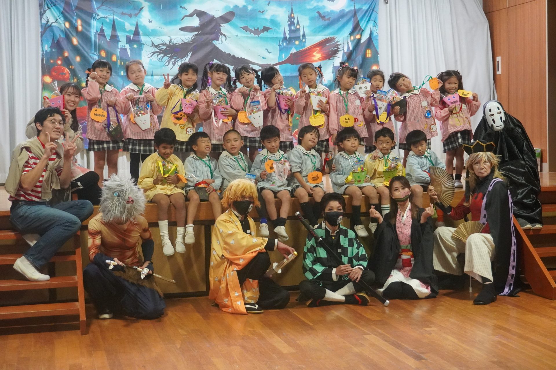 藤原白百合幼稚園では、遊ぶときは外で思いっきり遊ぶ、お話を聞くときは姿勢良く静かに聞くというメリハリのある保育を心がけています。園全体でそういった雰囲気があるので年少からきちんと椅子に座ってお話を聞く姿勢が自然と身についていきます。知っている言葉が少ない時期だからこそ、聞く力を身につけ、話す力を養っていきます。またお話を聞くことができることで、子どもたちの思考力や理解力も自然と培われていきます。